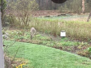 Vi slutter aftenen med kaffe hos Susanne og Torbens have på Østervangsvej 6. Her møder vi en gammel land have, der har været efterladt i 20 år, men den er ved at blive tilplantet med Hosta og Rhododendron. Der er lidt kuperet terræn, i bunden af haven løber en lille bæk, der snor sig gennem gamle mossede krat og træer. På marken bag haven er der opstartet en lille vin plantage.